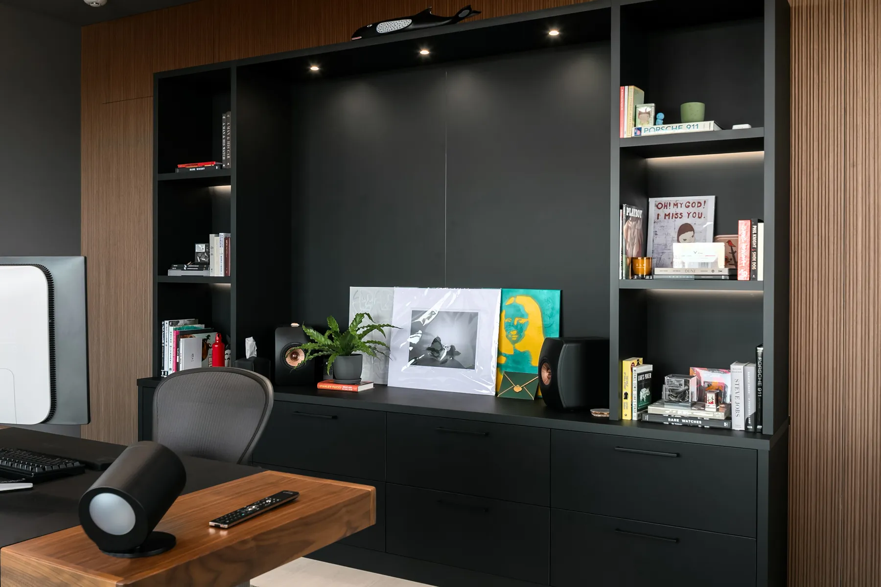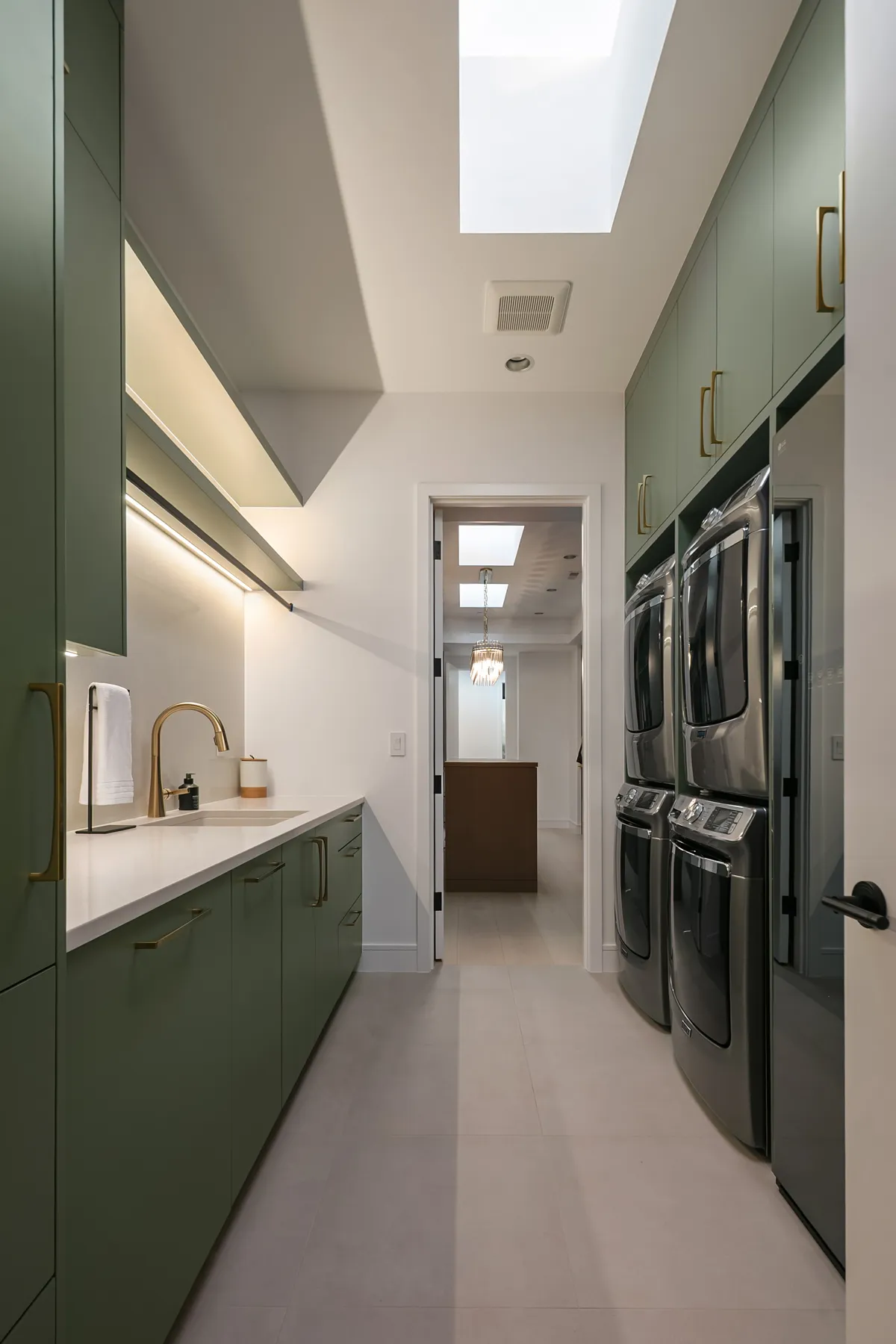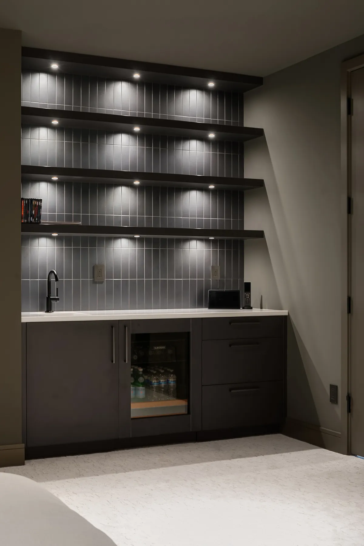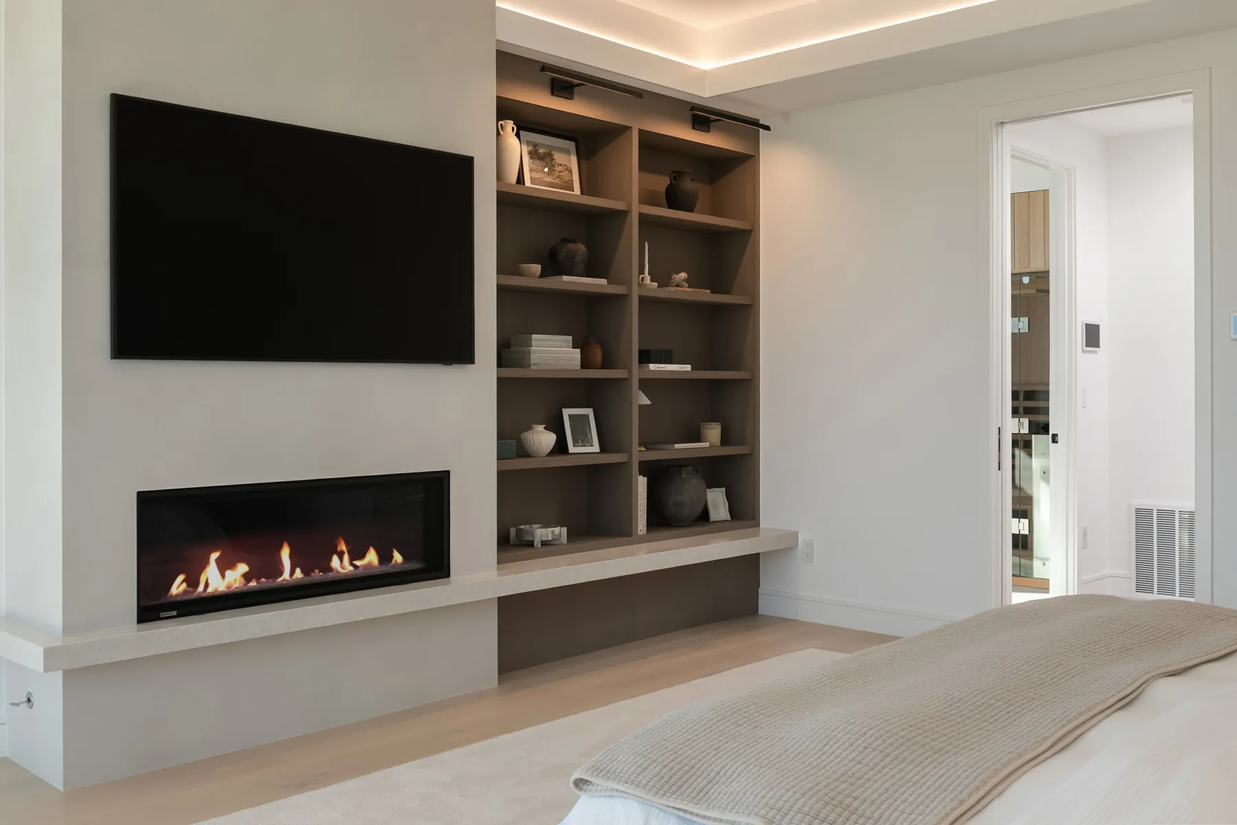 Project Description: Overlooking the stunning downtown Bellevue skyline, this project features soaring ceilings and expansive windows that demanded seamless cabinetry. Our clients desired a sophisticated blend of warm custom-stained white oak with crisp painted finishes, accented by integrated LED lighting throughout the kitchen and adjoining spaces. Euro-style cabinets with full-access frameless construction incorporate premium BLUM hardware, including soft-close drawers and lift-up systems for effortless functionality. In close collaboration with the design team, we crafted and installed a tailored, high-end solution that perfectly complements the home’s modern elegance and panoramic views.
